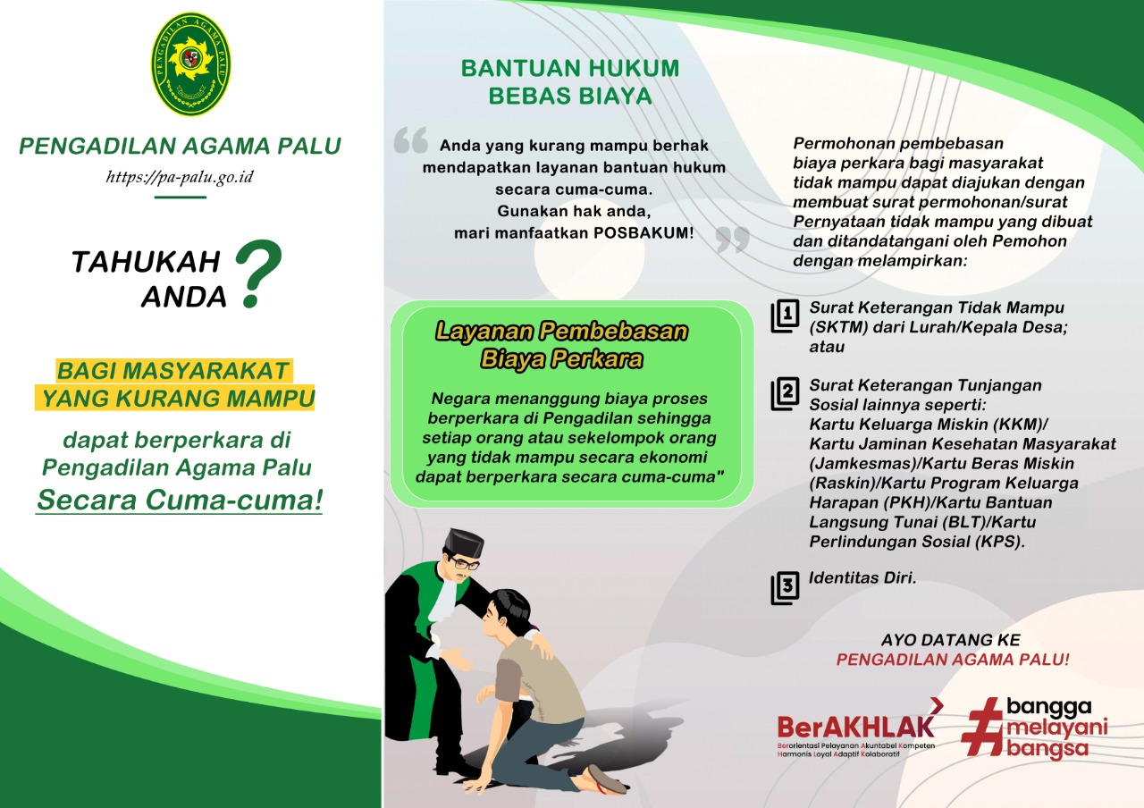 posbakumMahkamah Agung RI pada tanggal 9 Januari 2014 telah menerbitkan Peraturan Mahkamah Agung Republik Indonesia Nomor 1 Tahun 2014 tentang Pedoman Pemberian Layanan Hukum Bagi Masyarakat Tidak Mampu di Pengadilan.