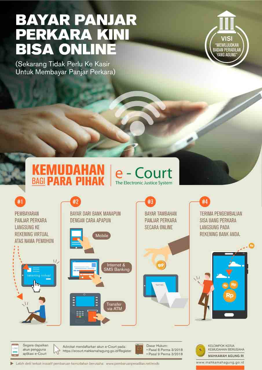 Adalah layanan bagi Pengguna Terdaftar untuk Pendaftaran Perkara Secara Online, Mendapatkan Taksiran Panjar Biaya Perkara secara online, Pembayaran secara online dan Pemanggilan yang dilakukan dengan saluran elektronik.